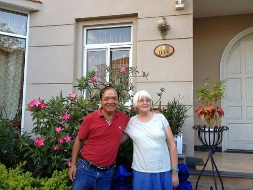 Cô Larisa và chủ nhà (áo đỏ cho nổi, hihi)