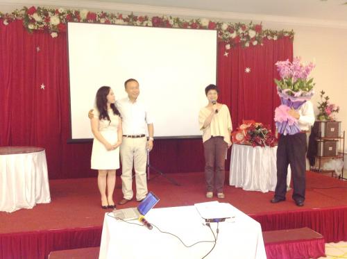 - Xin giới thiệu HT B Q Ngọc thay mặt anh chị em Hội NgườiKGU tặng hoa vợ chồng Nữ đại sứ!