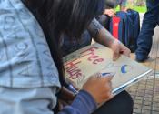 Lớp trưởng nâng cốc Liên hoan mừng nhà mới