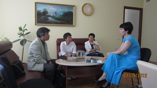 Ngọc Bình và Chi Mai trao đổi với cô Hiệu phó KGU